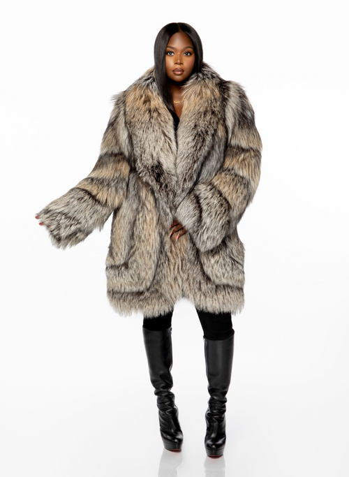 Be a stunner in the Siera Sheared Fox Coat, a luxurious addition to any wardrobe. Crafted from sumptuous sheared fox fur, this coat offers a sleek silhouette with a hook closure and two functional pockets, blending elegance with practicality.