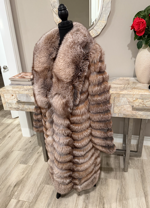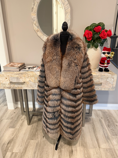 From day to night, the Trinity Mid-Length Fox Fur Coat is a versatile statement piece that blends timeless luxury with modern sophistication.